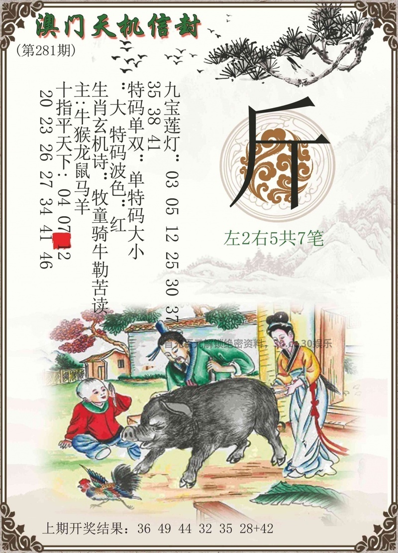 280期:<前后两肖>前肖+马鸡〗开:鼠42准
